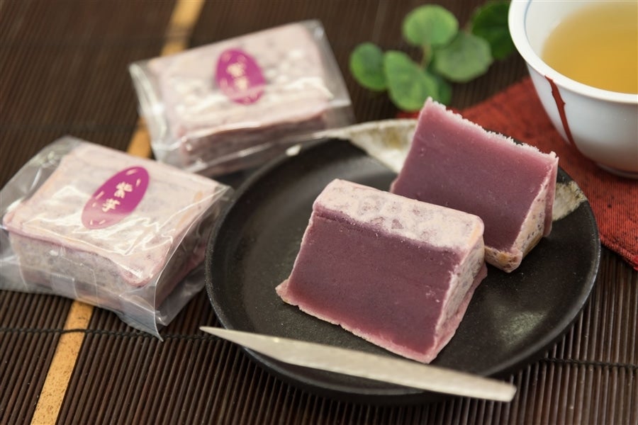 芋きんつば 紫芋:紫芋(徳島県産)、さつまいも(徳島県産 鳴門金時)、砂糖、小麦粉、水飴、寒天、塩