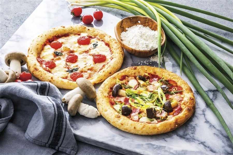 ピザクラスト(小麦粉、米粉、食用植物油脂、食塩、イースト、砂糖、その他/トレハロース)(国内製造)、ナチュラルチーズ、食用植物油脂、食塩、(一部に小麦・乳成分を含む)