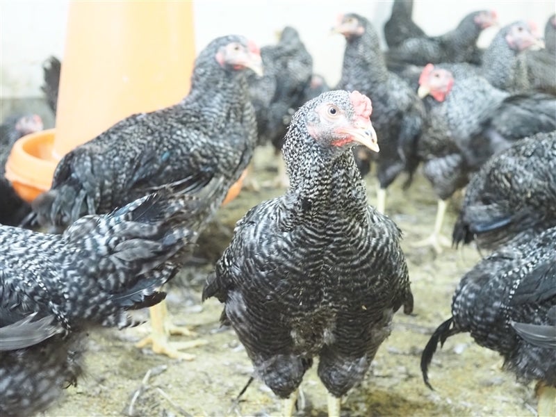 京都府畜産センターで年に2回ふ化、160日齢まで丹精込めて育て、家畜保健衛生所の検査で伝染性疾病などを確認し、合格したものだけが京地どりの種鶏となります。