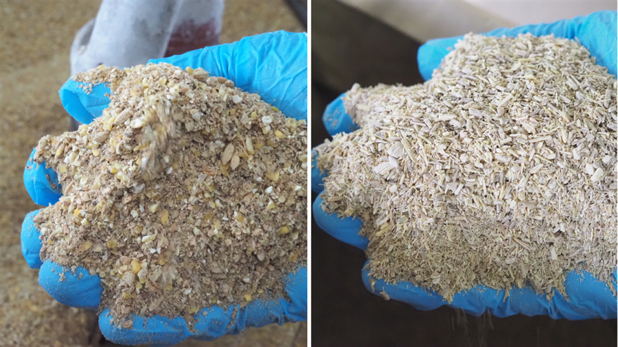 京地どりの「原料」は鶏肉そのものですが、その品質を決定づけるのは、飼育に使われる「飼料」です。京地どりは、地域資源の活用・持続的農業の実践を目的として、京都府畜産センターでの研究に基づき、地域資源の籾米を5%以上、京都の放棄竹林で伐採した青竹を粉砕した竹粉を2%以上加えた飼料で育てられています。