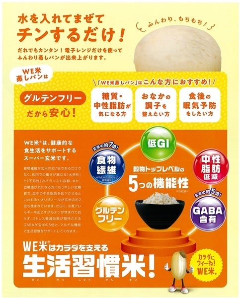 この『WE米』には、食後の血糖値上昇を抑える食物繊維やストレスなどの心理的緊張の緩和に効果があると考えられているGABAが豊富に含まれています。