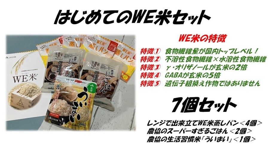 このセットに含まれる商品には、全てJA北大阪が大阪公立大学と共同研究した大阪だけで育てているスーパー玄米『WE米』を使用しています。