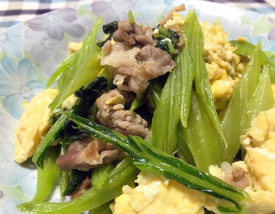 B 葉は、沸騰した湯でさっとゆで、細かく刻み、30分くらい水につけてアク抜きをする。