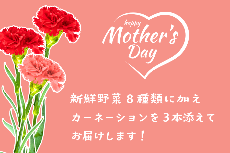 【母の日】新鮮野菜セット小(8種類)+カーネーション付き