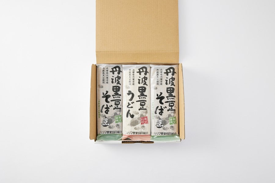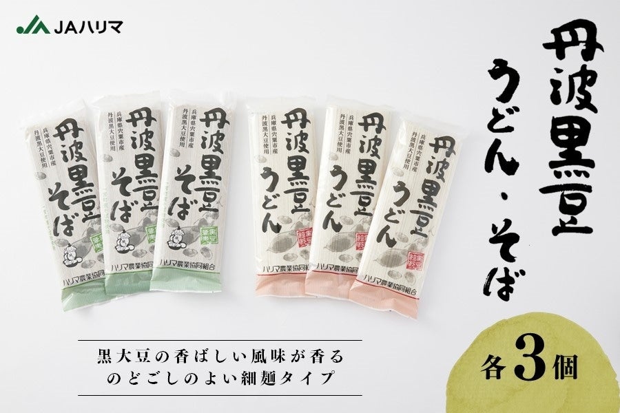 原材料:小麦粉(国内製造)、そば粉、黒大豆粉末(一部に小麦、そば、大豆を含む) 内容量:200g×3袋 ※1袋2人前 賞味期限:製造日より1年 保存方法:直射日光、高温多湿を避け、風通しのよい所で保存してください。 販売者:ハリマ農業協同組合 製造者:やくの麺業株式会社