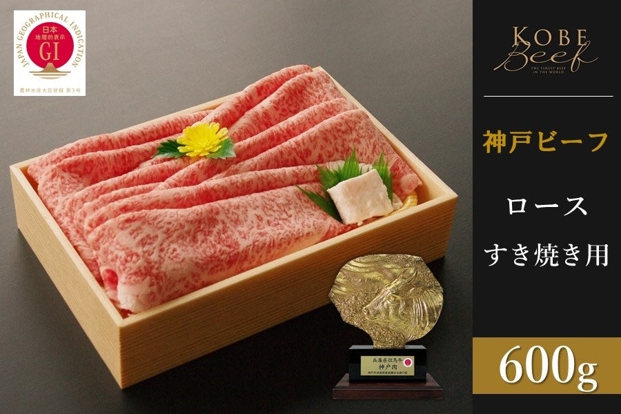 神戸ビーフ ロースすき焼き 600g  ”世界の舌を魅了する神戸ビーフ”をロースすき焼き600gでお届けします。適度な脂ときめこまかな肉質で、最も霜降りがよくのっている部分です。季節の野菜とすき焼きにすると最高です。 ご自宅用はもちろん、お中元やお歳暮など贈答用にもご利用いただけます。