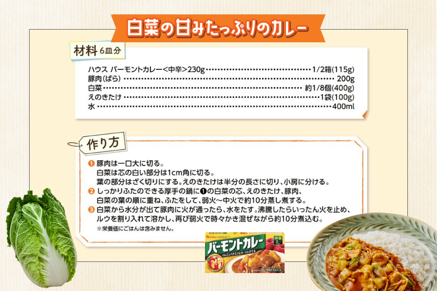 だから、淡路島白菜はカレーやシチューに入れるととろける食感&自然な甘みが絶品!