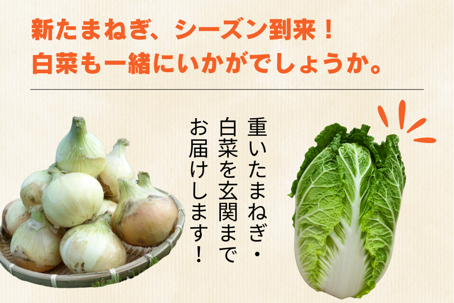淡路島の”新たまねぎ”をお求めのお客様! 白菜もご一緒にどうぞ!