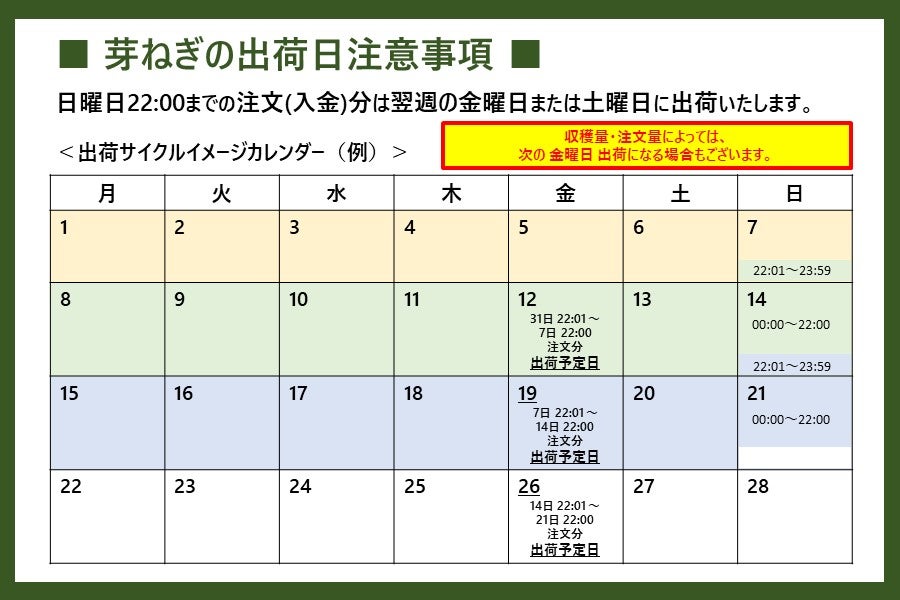 出荷曜日は毎週木曜日・金曜日・土曜日限定。