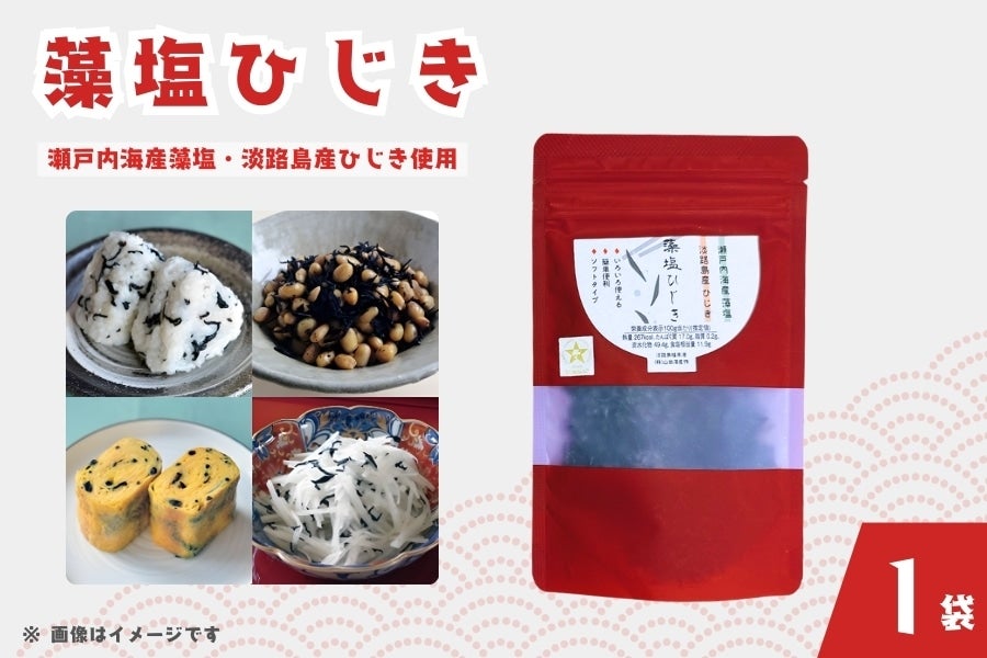 原材料名:ひじき(淡路島産)、還元水あめ、醤油、砂糖、発酵調味料、食塩(90%)、かつおエキス、調味料(アミノ酸等)、増粘多糖類、酸味料、粗製海水塩化マグネシウム(一部に小麦・大豆を含む)