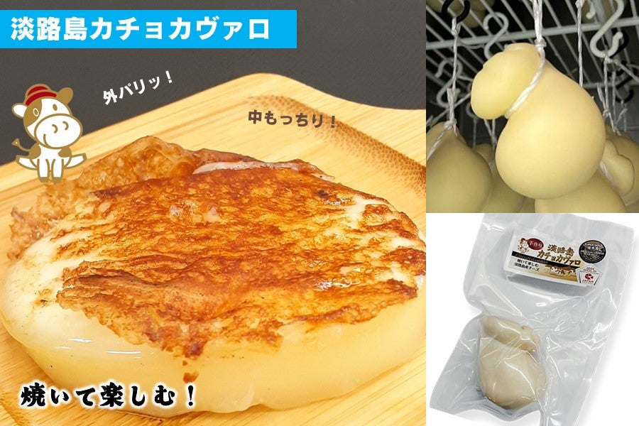 イタリア語でカチョはチーズ、カヴァロは馬という意味で、かわいいひょうたん型をした形をしています。原材料は新鮮で良質な淡路島の生乳を使用し、深いコクの味わいと藻塩の優しい塩味がアクセントになり、あらゆる調理が楽しめます。職人がこだわりをもって作り、冷蔵庫で1週間ほど熟成させ旨味を凝縮させたチーズです。 こだわり抜いた淡路島ならではの地チーズをお楽しみください。