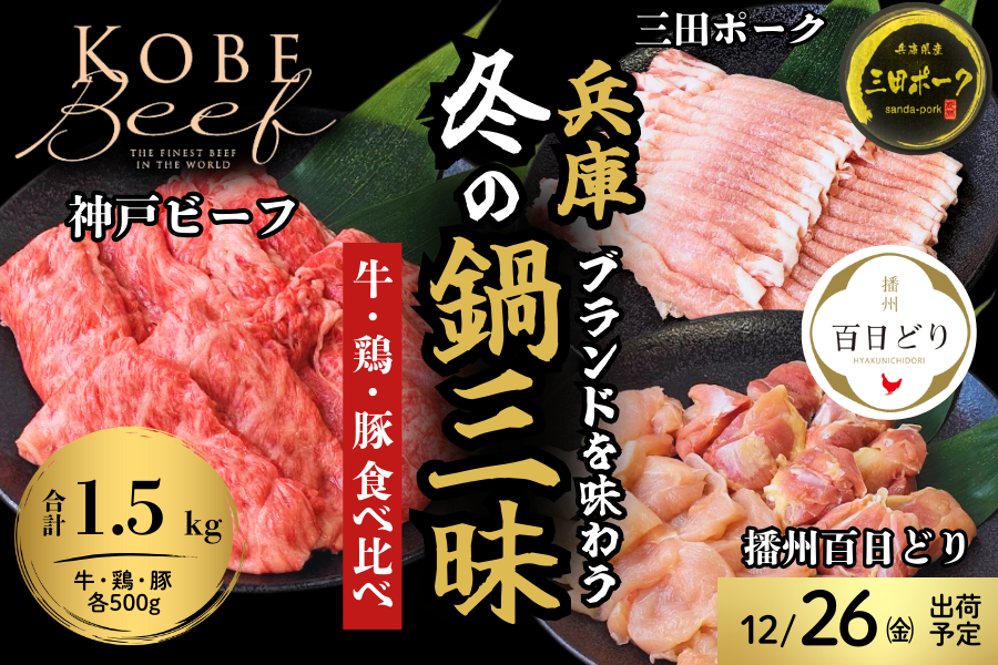 兵庫ブランドを味わう 冬の鍋三昧セット(神戸ビーフ・播州百日どり・三田ポーク 各500g) <12/26出荷分>