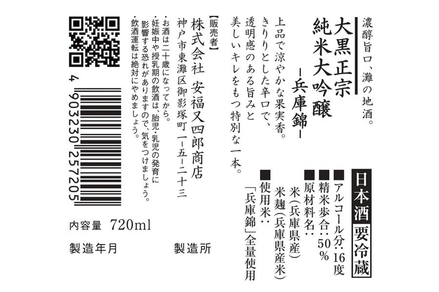 大黒正宗「純米大吟醸」 兵庫錦 (720ml)