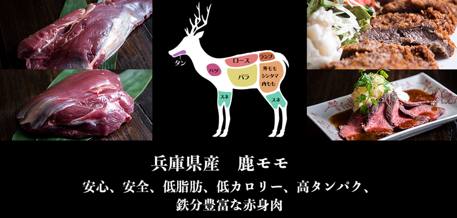 鹿モモ:安心、安全、低脂肪、低カロリー、高タンパク、鉄分豊富な赤身肉