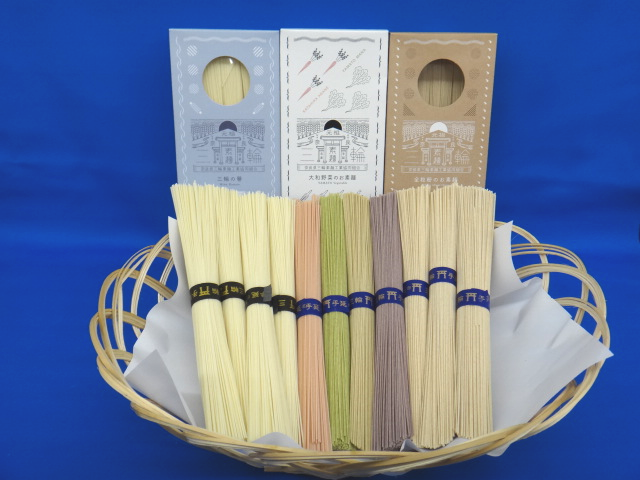 三輪そうめんと大和野菜入りのそうめんです。ご家庭用にはもちろん、ご進物にも喜ばれます。