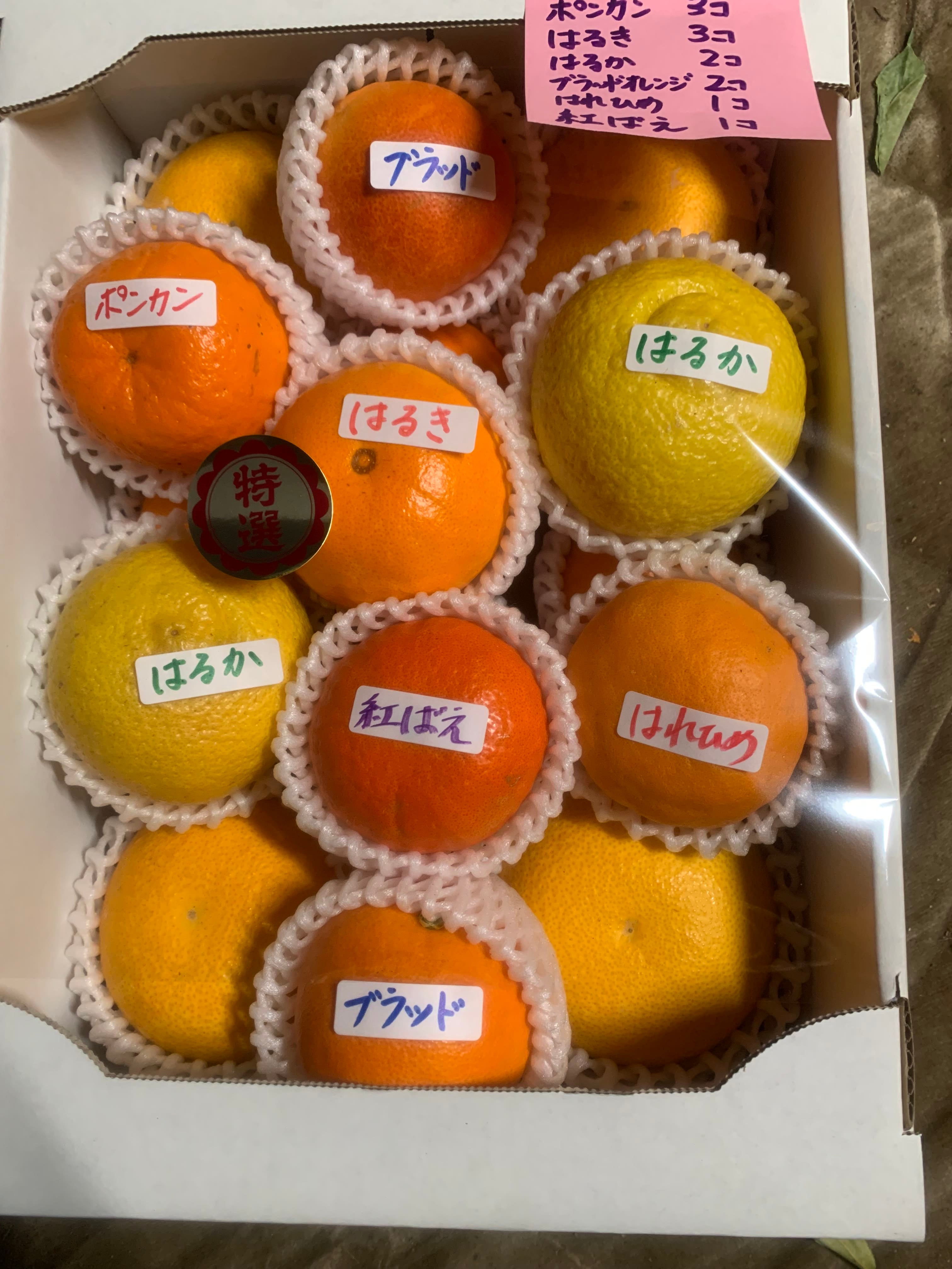 当園自慢のブラッドオレンジ、はるか、八朔をはじめ、その時に味がのっている柑橘を、6種類以上、16個を丁寧に詰め合わせています。