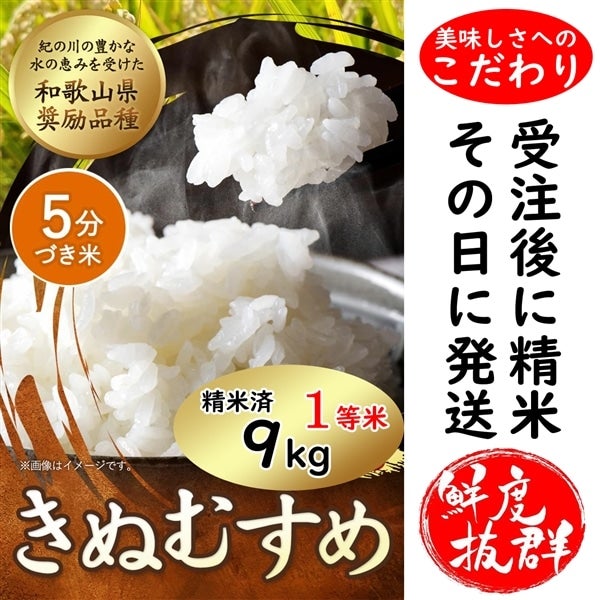 【受注後に精米、その日に発送】きぬむすめ 精米済(5分づき)9kg(4.5kg×2) 【和歌山県推奨品種】【令和5年産】