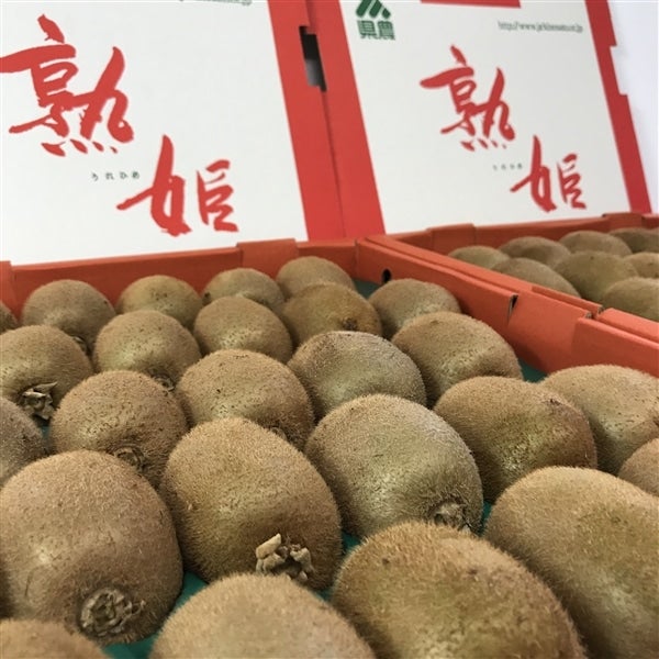 熟姫キウイフルーツとは、毎年収穫前の10月15日に全園地を巡回し畑の管理状態、園地調査を行い、収穫時に糖度が、13.5度以上に達するとされる園地の果実を熟姫として販売しています。丹精込めて作った熟姫キウイフルーツをぜひご賞味下さい。自信を持っておすすめします!