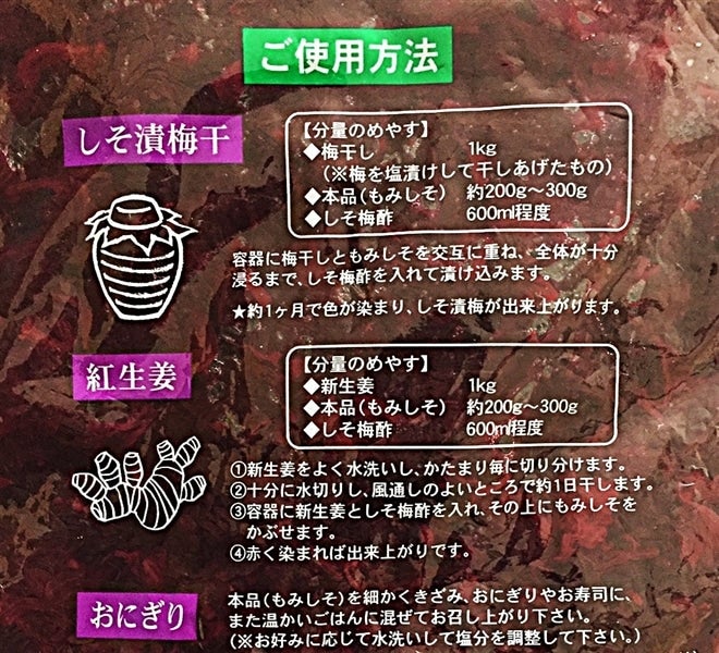 粗塩とともに丹念に手もみしました。 積み立てのしそならではのさわやかな香りと風味が生きています。