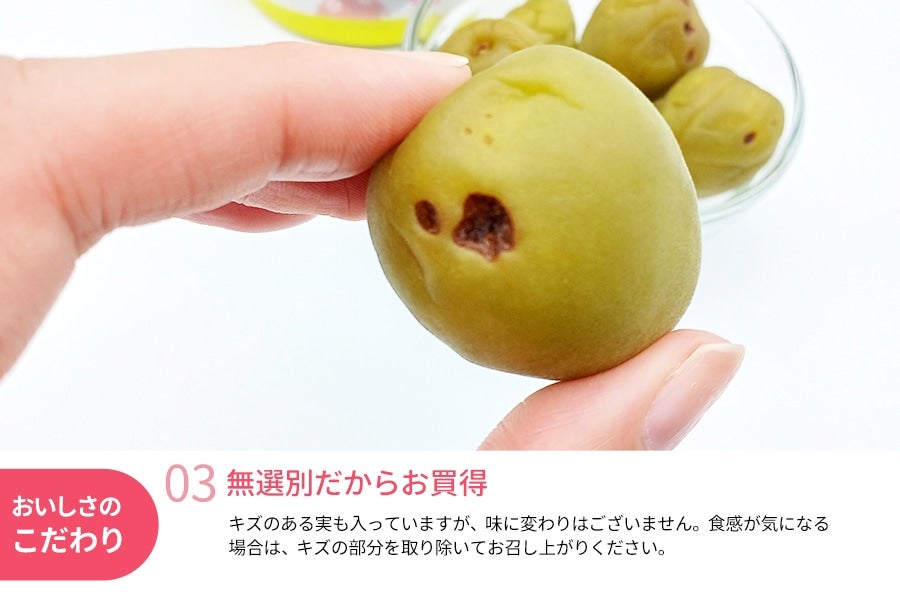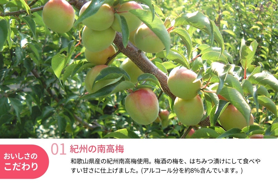 紀州産南高梅使用。梅酒の梅の実をはちみつ漬けにして、食べやすい甘さに仕上げました。