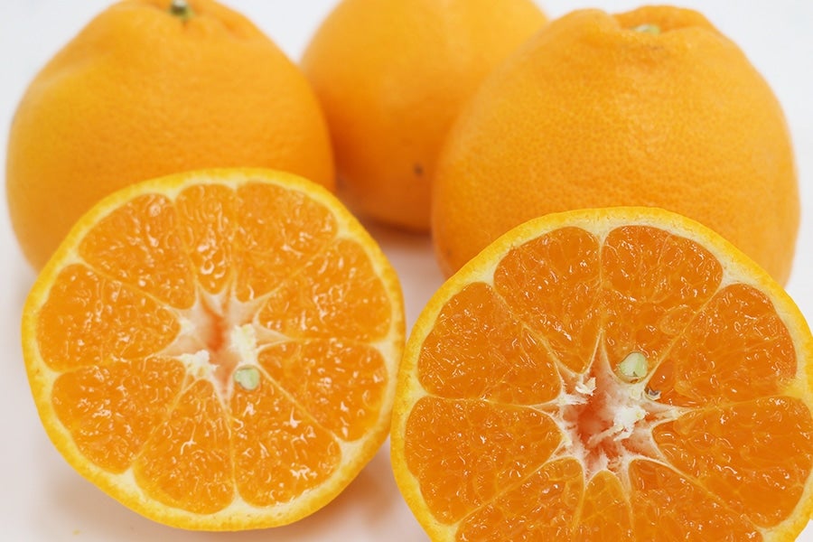 清見オレンジとポンカンを交配した柑橘。春をイメージさせる味と香りにちなんで「はるみ」と名付けられました。酸味が少ないので食べやすく、食味良好の人気の品種です。