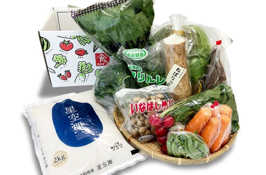 約7種類前後の旬の野菜と鳥取県オリジナル品種の星空舞をセットでお楽しみください。