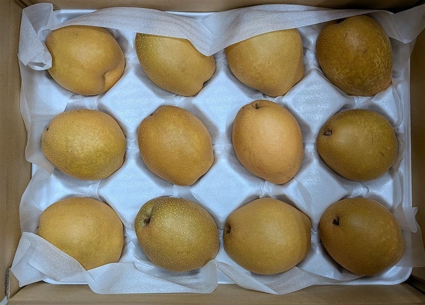 荷姿のみ市場出荷用の箱となりますが、使用しております梨は進物用の等級になります。