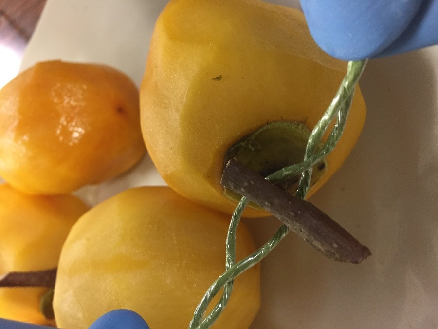 干し柿の作り方を書いた説明書と吊るし用「ビニール紐」(約3m分)をお付けします。紐は長さを調整してお使いください。