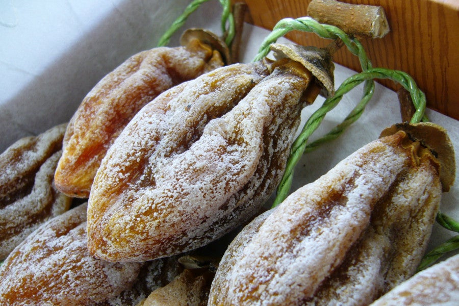 生産量が少なく、希少価値の高い畑(ハタ)の干し柿。