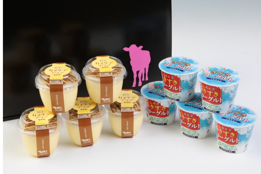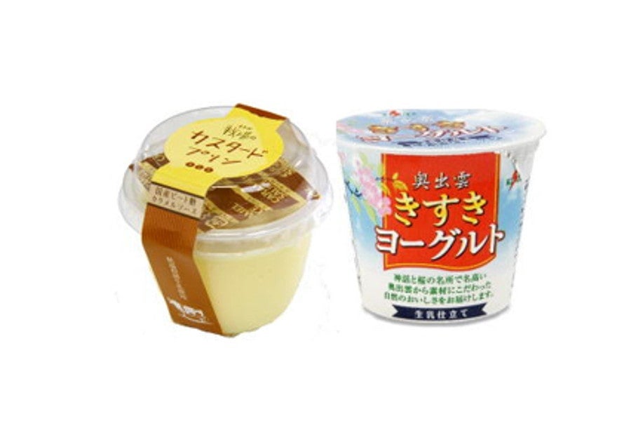 自然に恵まれた奥出雲の酪農家たちが育てた牛の良質な生乳から生まれたカスタードプリンとヨーグルトのセットです。
