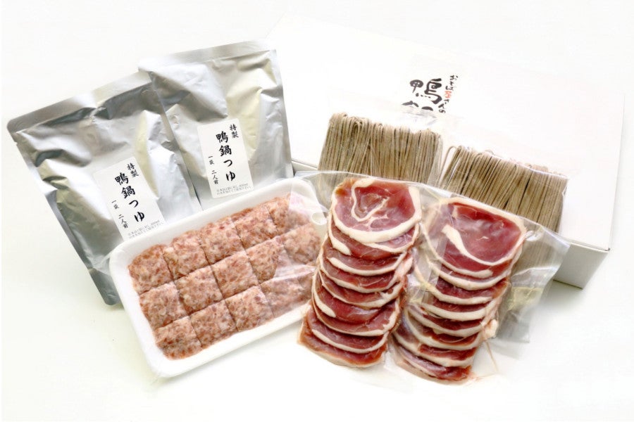 脂ののった「鴨」と名物「出雲そば」がセットになった鴨鍋セットです。