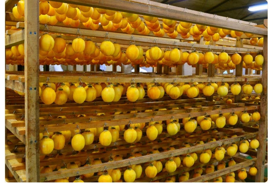 「平田の柿」は南向けの斜面で太陽の光を浴び、ミネラルを豊富に含んだ粘土質の土壌で育つので、みずみしくおいしい果実を実らせます。 甘くておいしいあんぽ干し柿を作るため、徹底した品質管理を行っています。 どうぞ、安心してお召し上がりください。