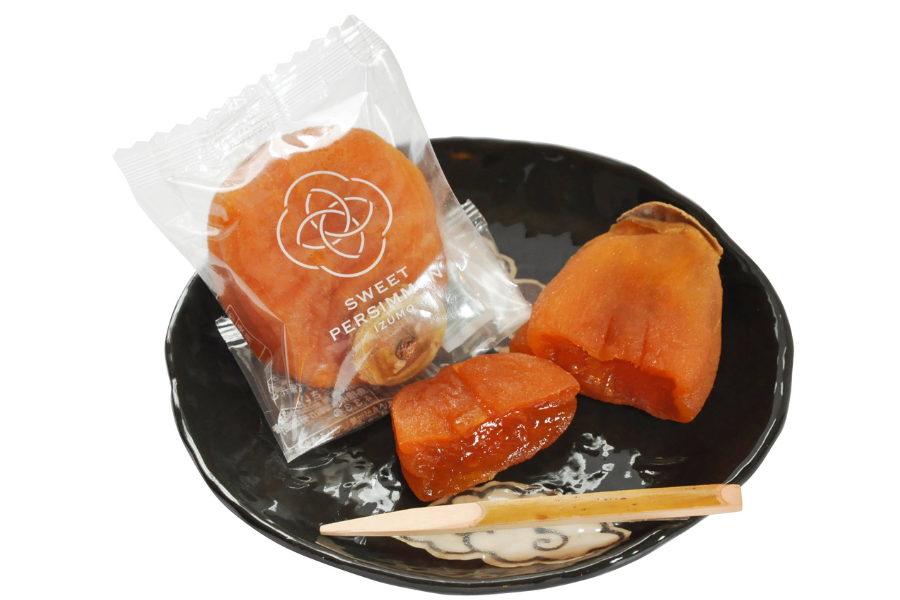 「スイートパーシモン」は甘くて口当たりが良い、島根県では特に人気のある 西条柿をひとつひとつ丁寧に乾燥させた干し柿です。 自然乾燥から機械乾燥を行い、柿の中から水分をじっくりと抜いて製造しています。 水分含有量を30%程度まで乾燥させるため、軟らかくしっとりした食感の半生タイプの干し柿です。 西条柿を乾燥させることによって、その甘さをさらに凝縮させながらも、ほどよく水分を残すことによって、和菓子の様な軟らかな口当たりに仕上げました。 原料の西条柿は、県内でもトップブランドの 平田地区で栽培されたものを使用しています。 スイートパーシモンは 日本茶はもちろん、コーヒー・紅茶とも相性が良く、 幅広い世代の方に人気があります。