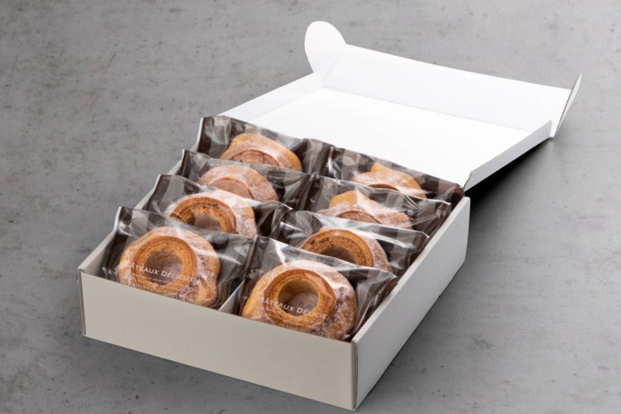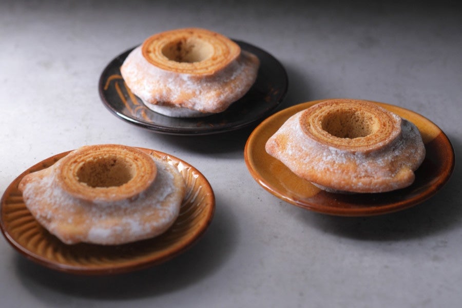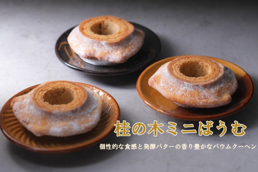 彩り天佑卵と島根県産の米粉をふんだんに使用した、個性的な食感と発酵バターの香り豊かなバウムクーヘンです。