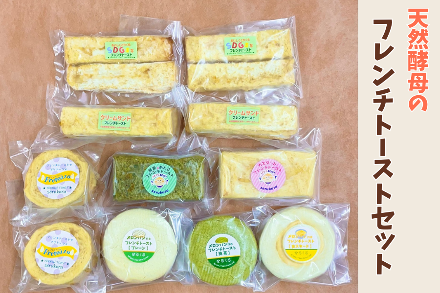 ※使用する食パンは、「プレーン食パン」「全粒粉食パン」「押麦食パン」「玄米食パン」「紫いも食パン」で、すべて天然酵母で焼き上げたものです。食パンの種類はおまかせください。