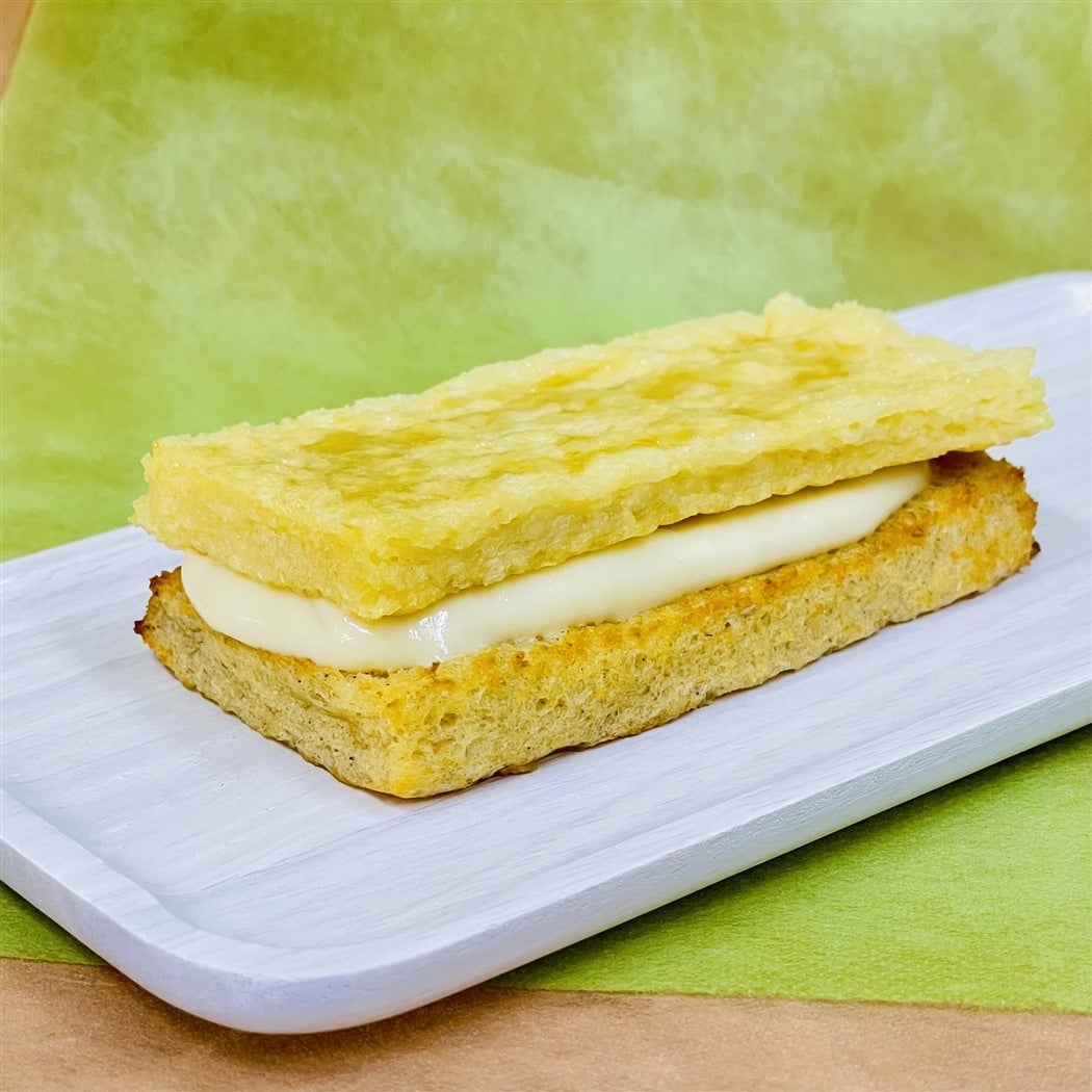 プレーンタイプのフレンチトーストの間に、島根県産米粉で作った自家製カスタードクリームをサンドしました。
