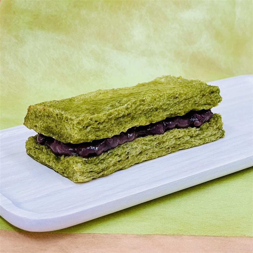 島根県産抹茶のアパレイユに浸した抹茶フレンチトーストの間に、北海道産朱まりあんをサンドしました。