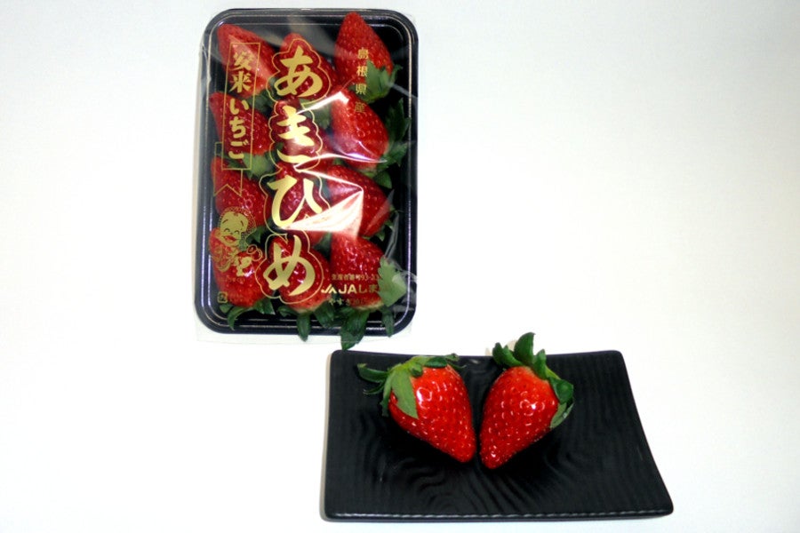 あきひめは特徴的な長めの円錐形をしていて、果皮はやわらかめ、酸味が少なくてジューシーで甘いいちごです。