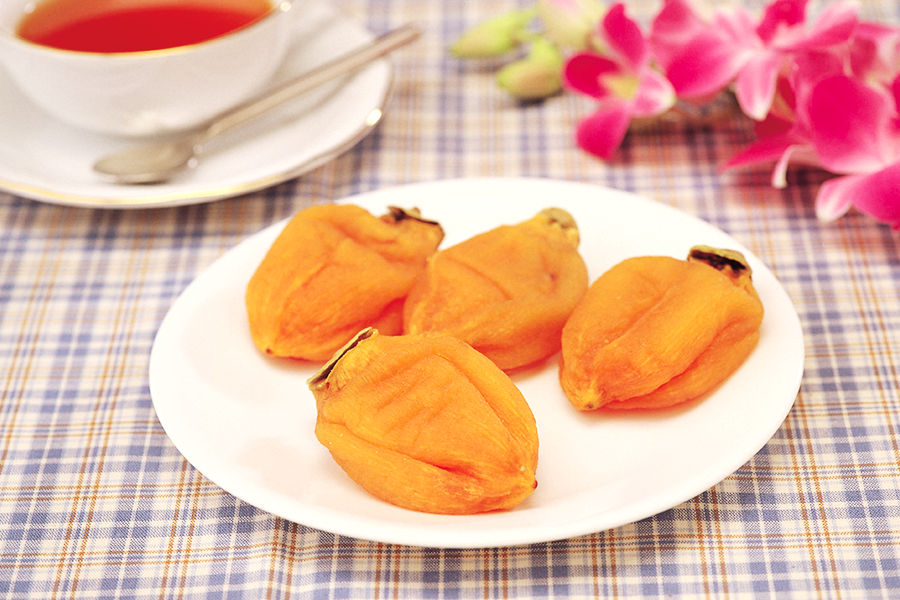 西条柿を乾燥させることによって、その甘さをさらに凝縮させながらも、ほどよく水分を残すことによって、和菓子の様な軟らかな口当たりに仕上げました。