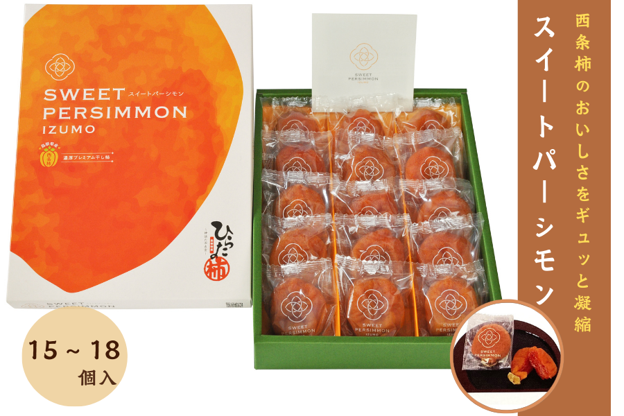 「スイートパーシモン」は甘くて口当たりが良い、島根県では特に人気のある西条柿をひとつひとつ丁寧に乾燥させた干し柿です。