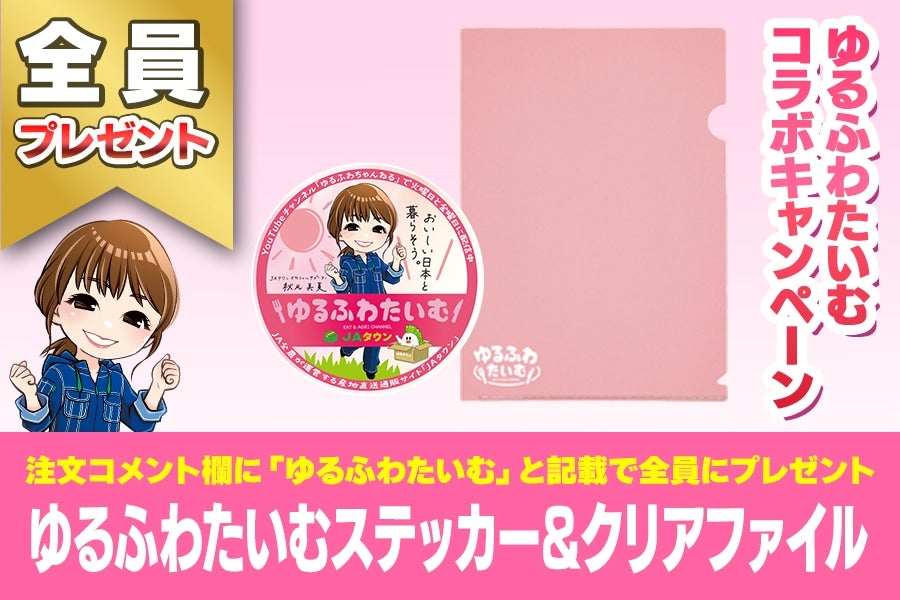 注文時のコメント欄に「ゆるふわたいむ」と記載していただいた方”全員”に『ゆるふわたいむステッカー&クリアファイル』をプレゼントいたします!