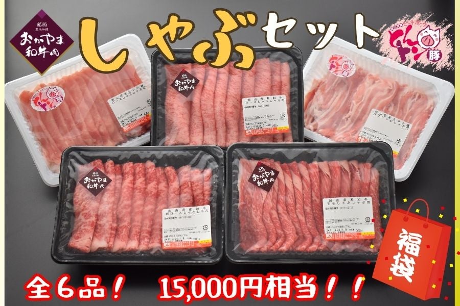 岡山県は”くだもの”だけじゃない…お肉も美味しいのをご存じですか?素晴らしき自然の恵みと人の技晴れの国おかやま≠ェ誇る『おかやま和牛肉』と「安心・美味しい・やわらかい」の3拍子揃い♪純おかやま育ち≠フSPF豚『ピーチポークとんトン豚』をしゃぶしゃぶセットにしました!あわせて6品、総重量2kgのとってもお買い得なセットとなっています!!大人数でしゃぶしゃぶするもよし♪一度に食べない場合は冷凍して、1種類ごとにちょっとずつ楽しむもよし♪しゃぶしゃぶ以外にもスライスの代わりとして、和牛ならすき焼きや牛丼の具、豚肉なら炒めものや豚汁にしてもOK!この機会に岡山の和牛肉×豚肉をご賞味ください♪