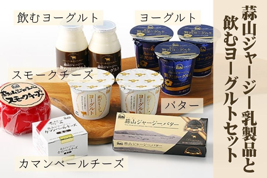 人気のヨーグルトや飲むヨーグルトをはじめ、2種類の手作りチーズとバターをセットにしました。