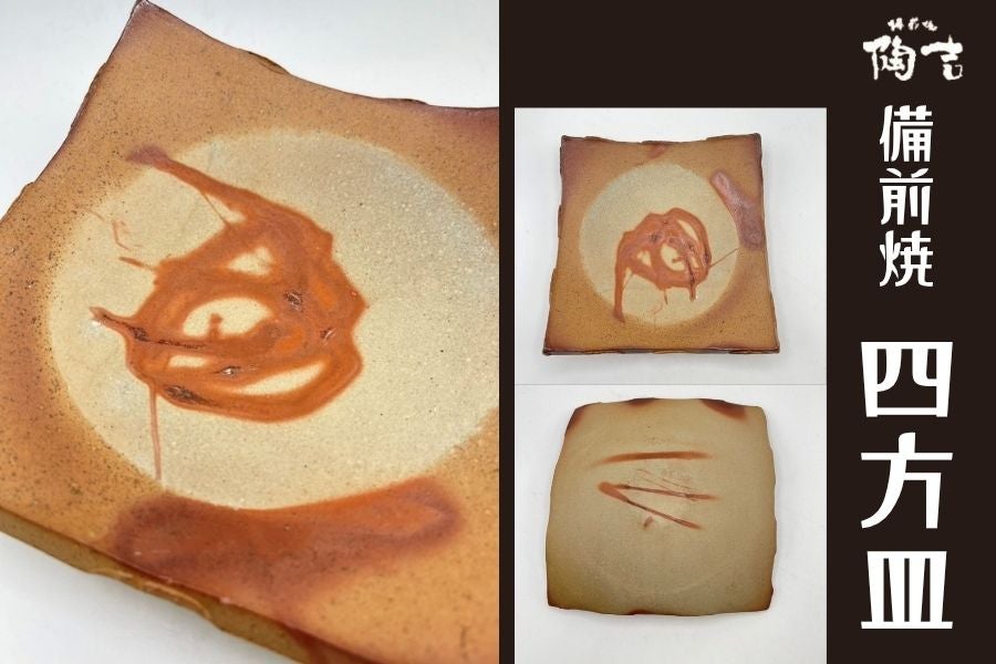 四角いフォルムが食卓にモダンな印象を添える備前焼の四方皿です。直線的な形状は盛り付けを引き立て、和食はもちろん洋の一品にもよく調和します。