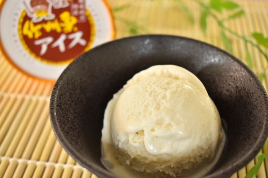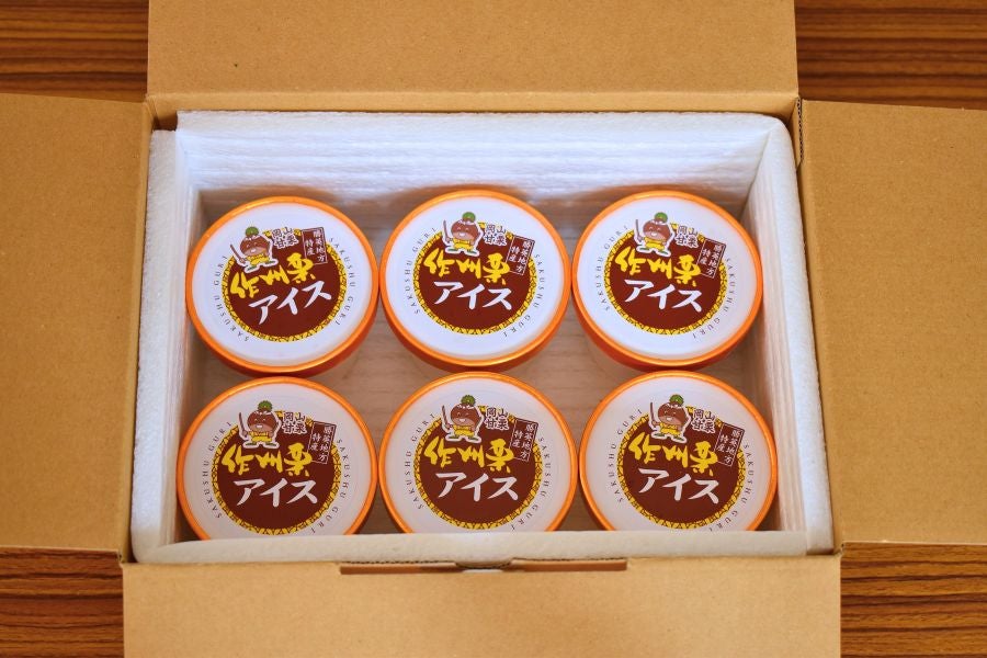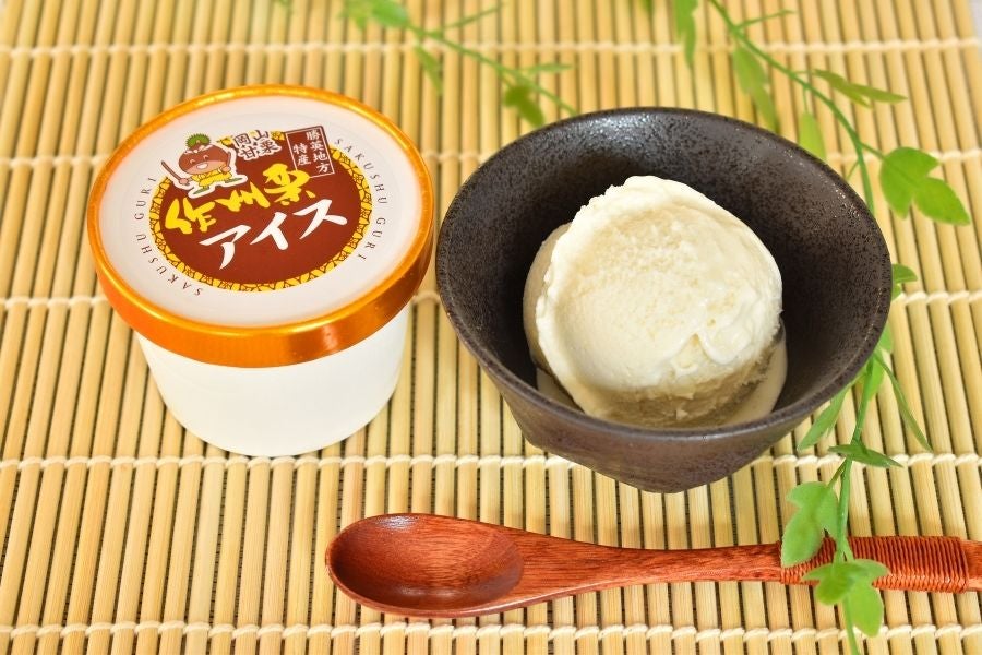 勝英地域で栽培された「純国産」の甘栗「作州栗」を使用したアイスです。