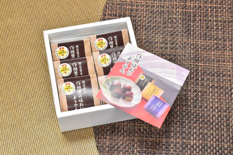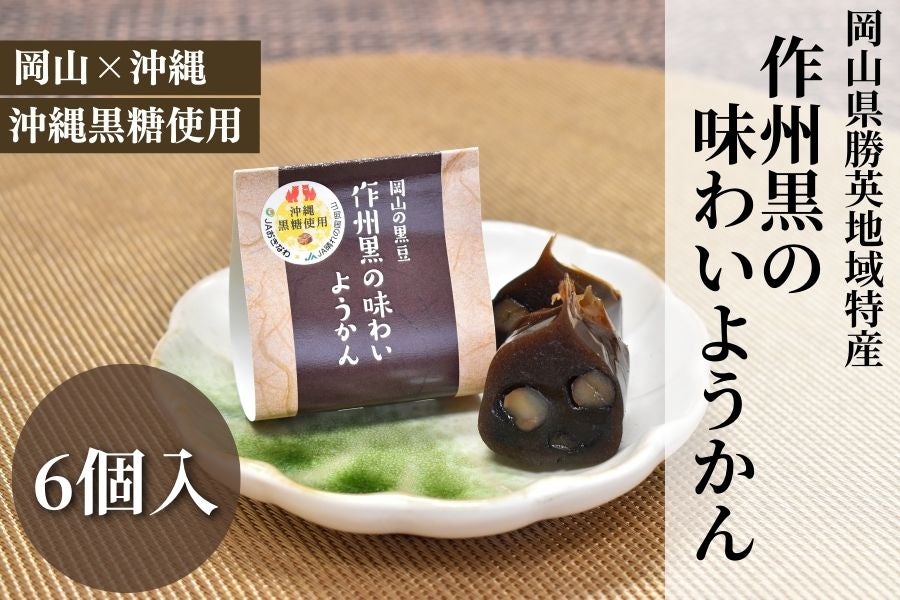 岡山の黒大豆「作州黒」と沖縄県特産の黒糖を組み合わせてできたようかんです。黒糖の風味と作州黒の風味がふんわりと感じられるほどよい甘さをお楽しみください。