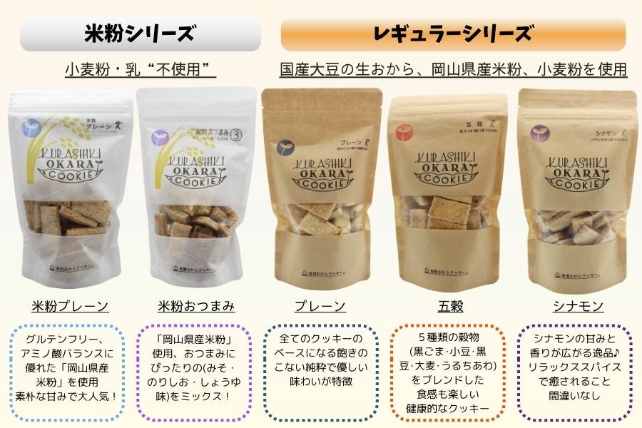 生のおからからできた倉敷おからクッキーは、お子様におやつを手作りする「安全でおいしいものを…」という母と同じ想いで作っています。