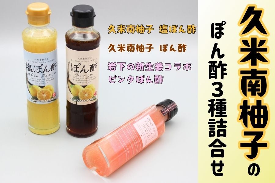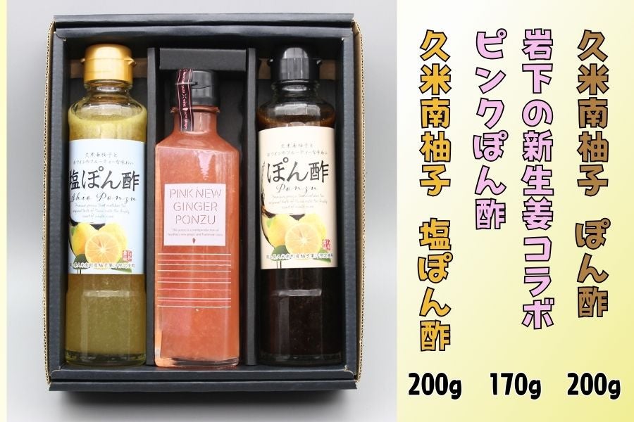 贅沢に久米南のゆずを使用したポン酢2種と久米南ゆずと岩下の新生姜をコラボしたポン酢の詰合せセットです♪