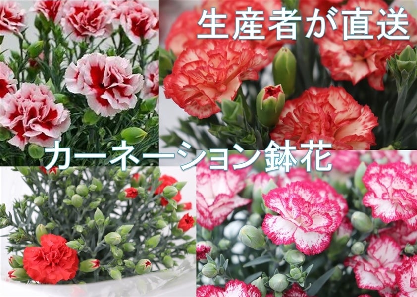 温暖な瀬戸内の気候で育った江田島のカーネーション鉢花です。生産者オススメの4品種の中からお選びください。