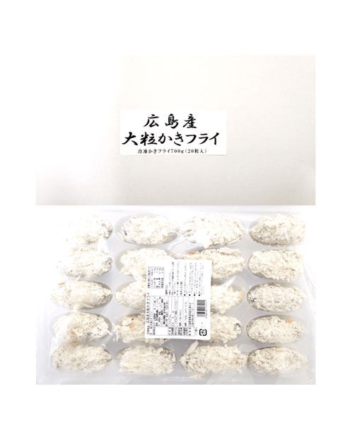 かき(広島県産)、衣(パン粉、小麦粉、粉末植物脂、コーンスターチ、全粉乳、食塩、香辛料)加工デンプン、調味料(アミノ酸等)、増粘多糖類、香辛料抽出物、(一部に小麦・乳成分・大豆を含む)